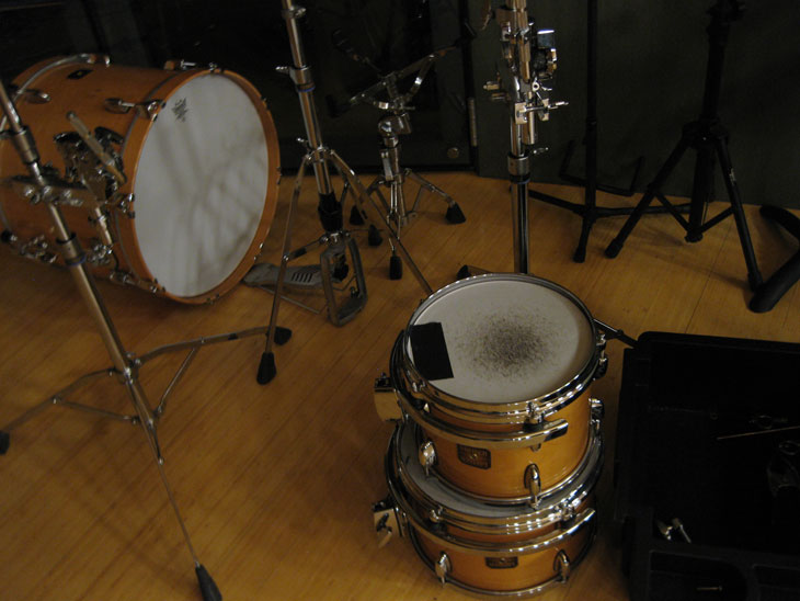Problem shows up during fast snare sections. Original snare bleeding through overheads creates wash and mud.